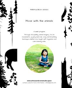 This 6-10 week program gradually builds the children's ability to learn and practice tai chi movements. In addition to the tai chi movements, the program works on gradually cultivating self regulation and listening skills over the 6-10 week period. Children will build up breathing and meditation skills in small increments over the course of the program. Leda uses the story of Chang ( the legendary founder of tai chi) and his studies of the animals on Three Peaks Mountain as the foundation of this program.